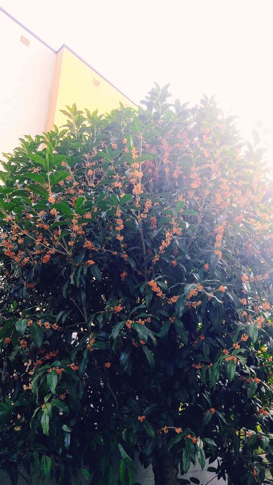 逆光だけど今年のキンモクセイは花のオレンジ🧡が濃い感じ🤭✌️