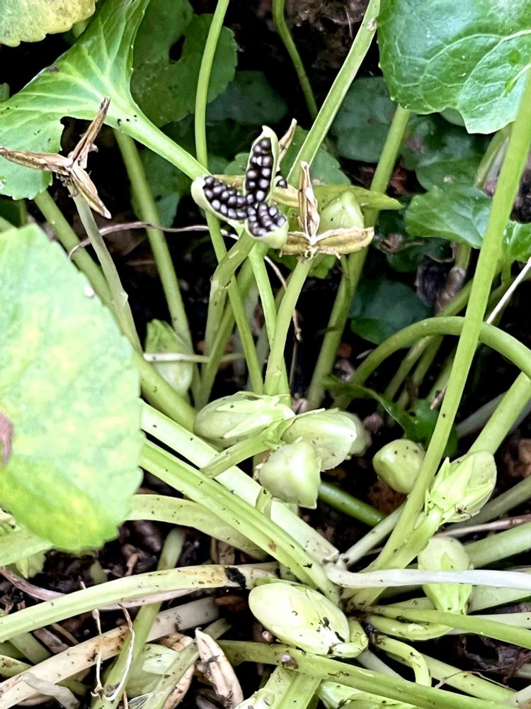 ① スミレの鉢を作ろうと、フキカケスミレと黒葉スミレ ラブラドリカを植えた鉢。閉鎖花がパッカンしてます。
