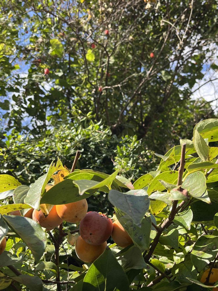 ②柿 親指と中指を輪にしたくらいの小さな柿 道にポタポタ落ちてる。渋柿なのかな⁇