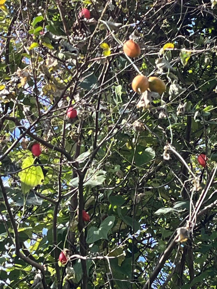 ③カラスウリ 柿の木を見上げると濃く色付いた実がたくさん