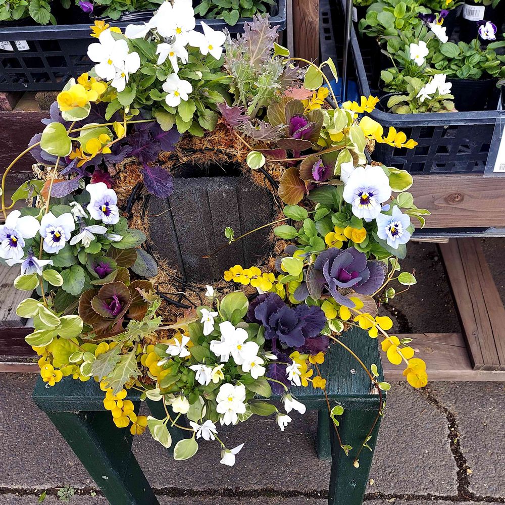 ビオラとハボタンのリング寄せ植え🌱🌸