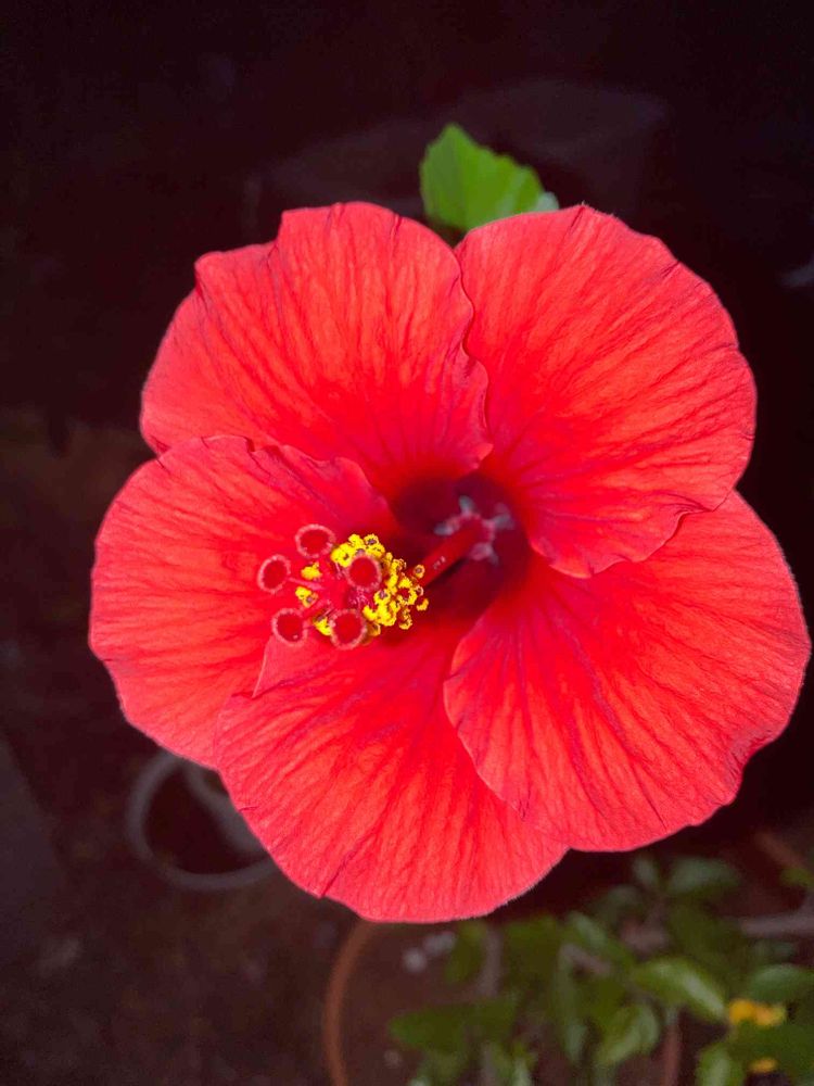 夜帰宅すると庭の暗闇のなか真っ赤なハイビスカス🌺がまだ咲いてる!😳