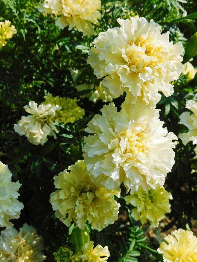 花壇でアフリカンマリーゴールドがたくさん咲いています