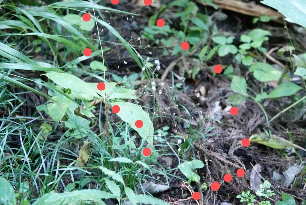 叢の中、あちこちあり珍しくは無いのですが姿を捉えられず赤丸で囲んでみました。