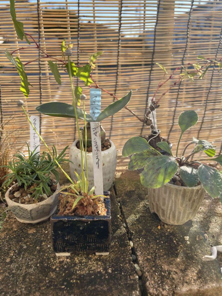 最近、山野草を始めました。旦那は盆栽、私は下草を学び始めました。 自宅で陶芸しています、豆鉢など作っています。の