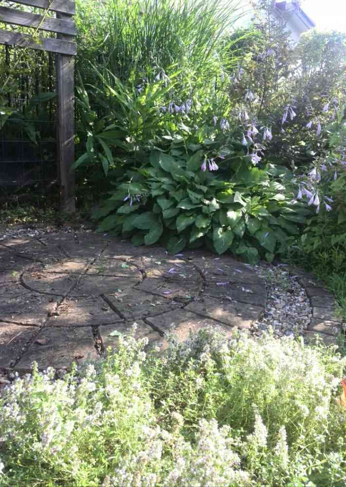 あすかルビーさんのテラス,ギボウシ,白花クリーピングタイムの投稿画像