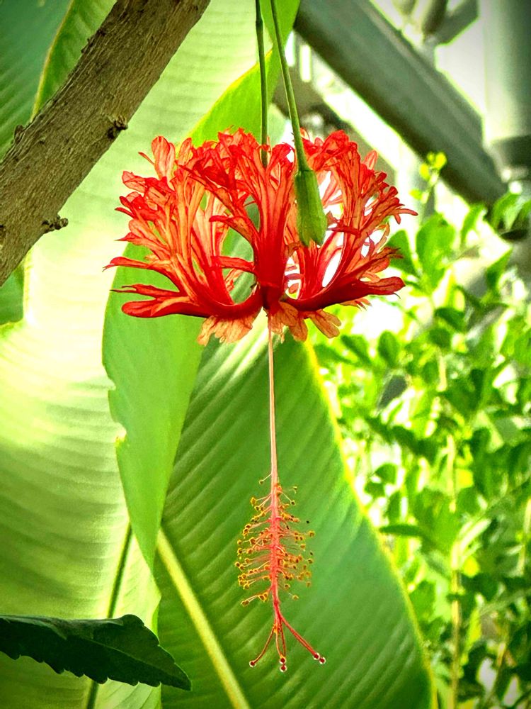 えぇ❣️逆さまに咲くんですねぇ🎐ハイビスカス🌺の逆立ちみたい🌟✨植物館楽しいですね♪