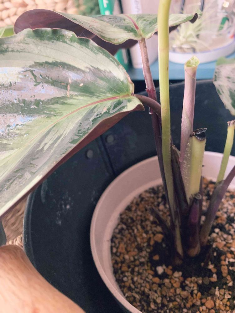 他の子も新芽続々なので、私の思ってたカラテアの印象と違う💦
