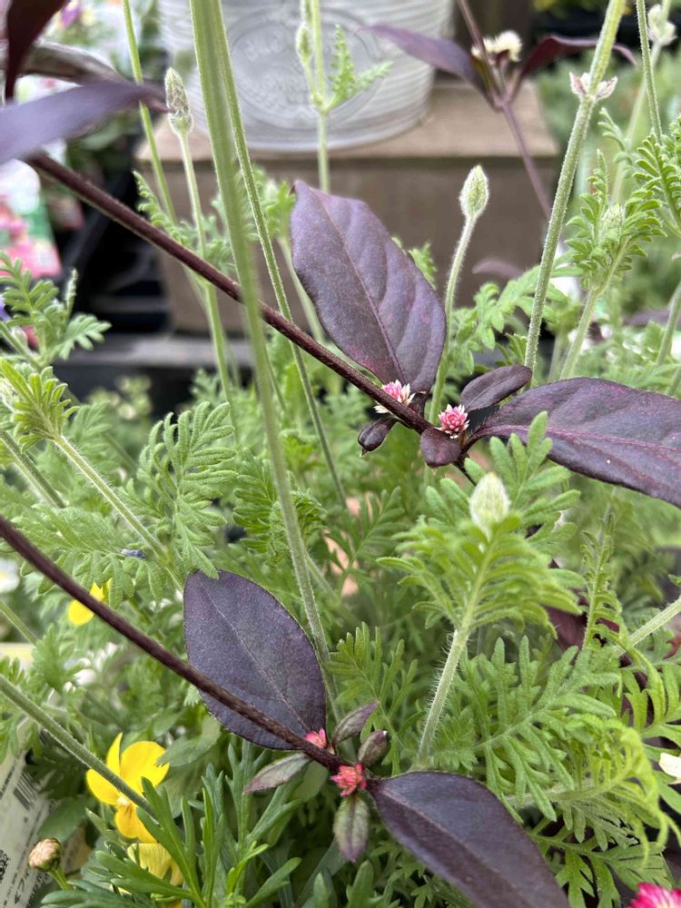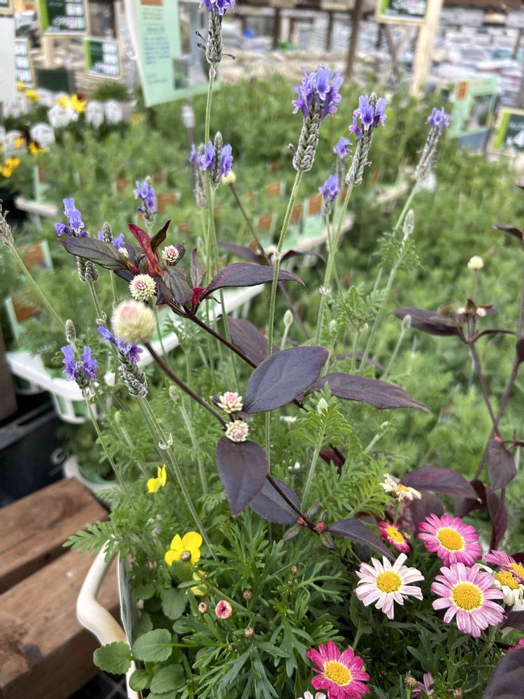 レースラベンダーと赤葉センニチコウが混じり合うような寄せ植え🪴を作りたいなと思いました。