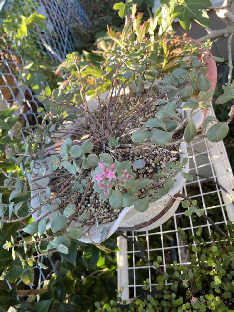 さん^_^ 今晩は 動かしてひっくり返したミセバヤ鉢🪴 貧弱にしてしまった🤦 今年は仕方ない 🪴鉢植えばかり🤷♀️🤷🏼🤷♂️ 言い訳があって助かって😅ます 980円で匂いザクラが😍ピンクの花の咲いていて💕良く買わずに帰って来たと 未だ咲いた事の無い小さい庭の🪴匂いザクラ 今朝は大きな🐛青虫が居て枯れた枝で引き離してやりましたー