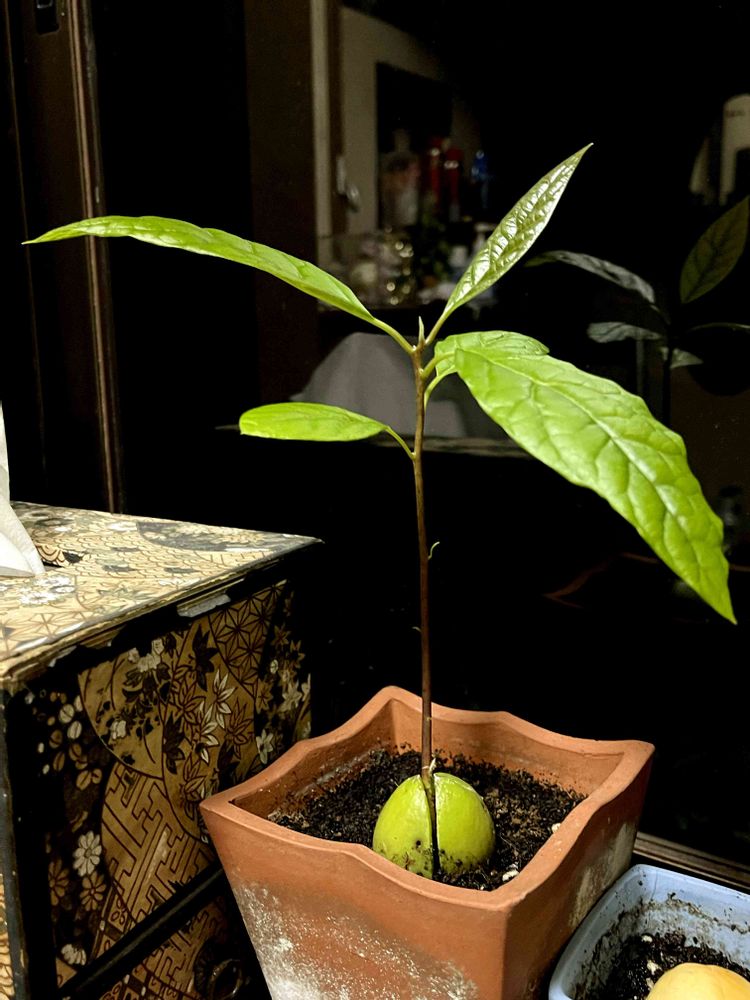 4枚目の画像のアボカドさんはひとつの種から2本伸びてます。