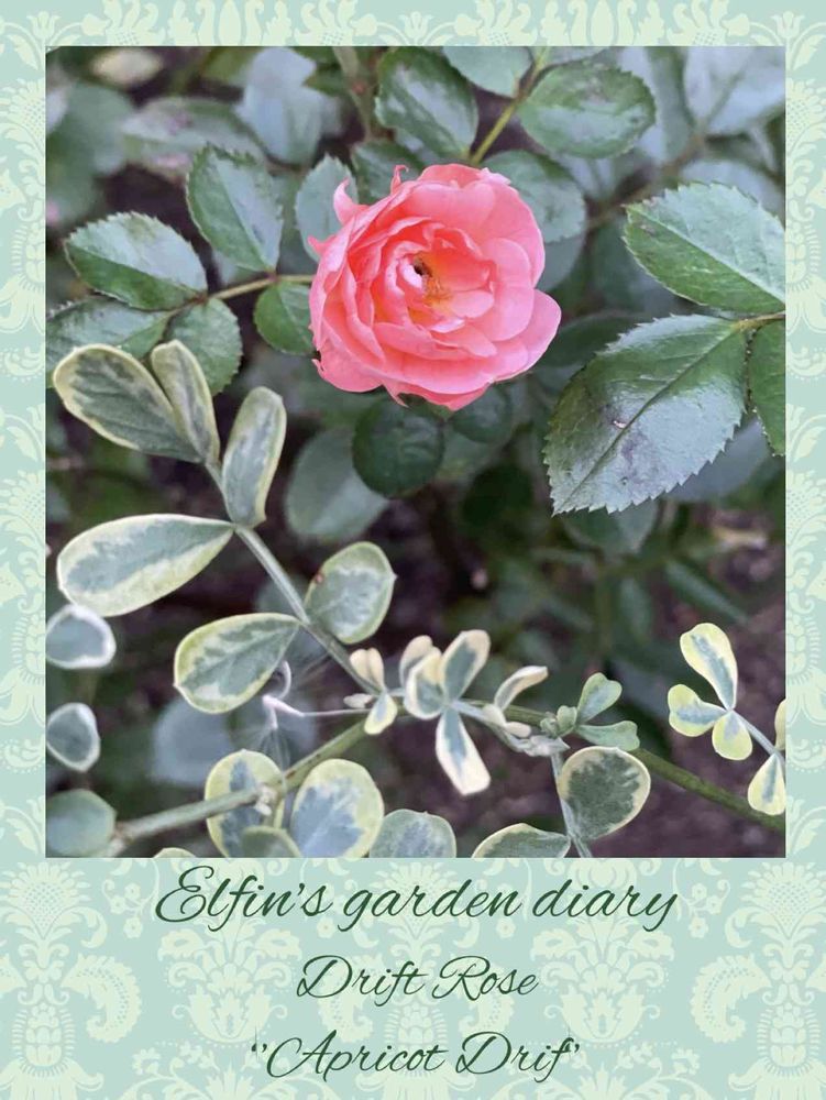 本日の投稿picは、ドリフトローズ アプリコットドリフトと斑入りの葉っぱは、花が終わっているコロニナ バレンティナ バリエガータ。花が終わってもやはり斑入りの葉っぱは花の引き立て役として最高だわ