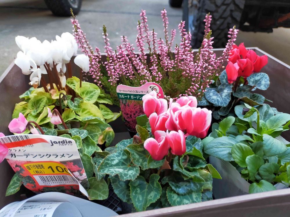 写真に写ってないけれどアリッサムやシロタエギク、それにサカタのタネさんのよく咲くスミレも購入してきましたヽ(=´▽`=)ノ