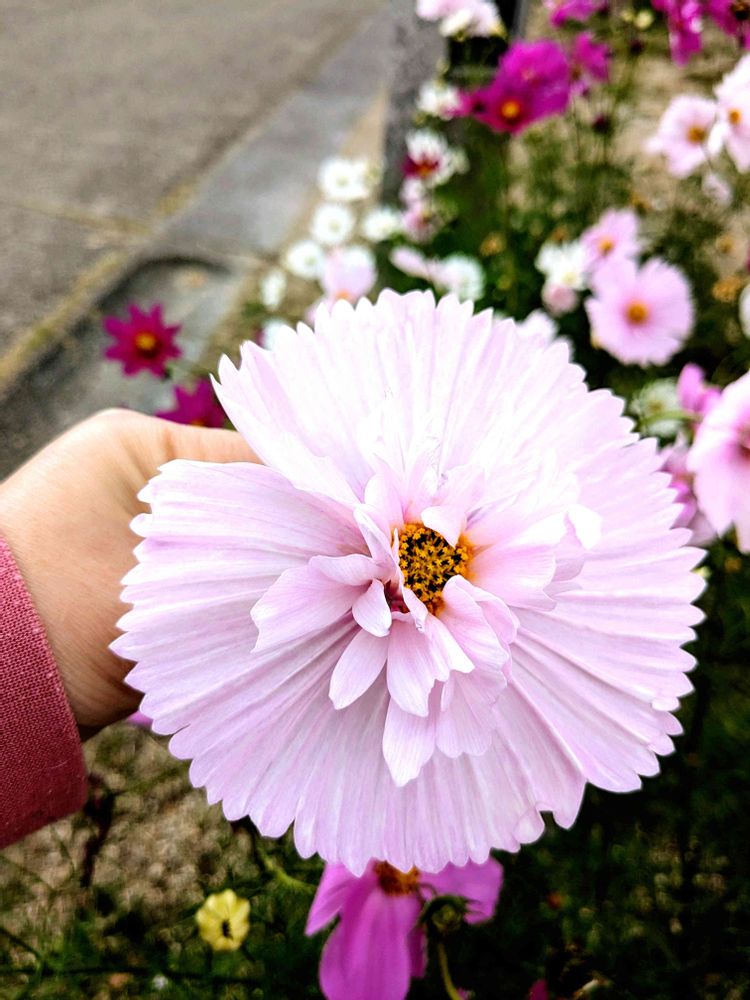 すごぉ−−−い👀🩷コスモスじゃないみたい🤭おっきい‼️しかも形が……八重❓