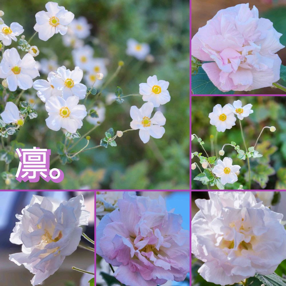 真っ白な秋明菊と酔芙蓉をコラージュしてみました🤍🩷