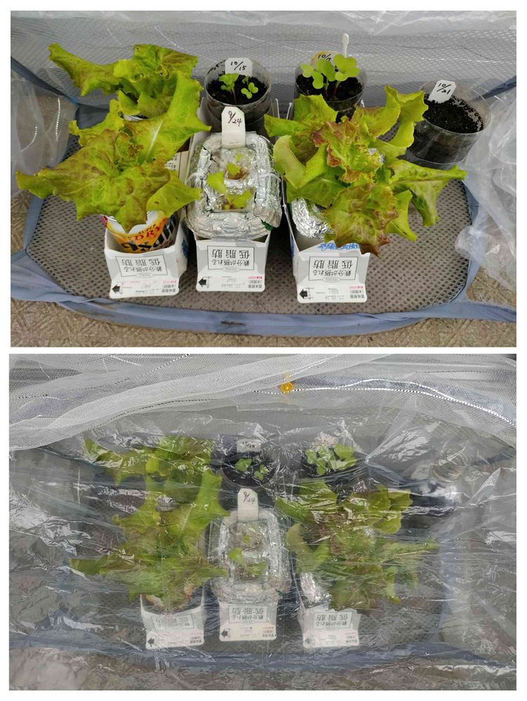 ビニールをかけると良いのがわかったので、虫よけネットの下に仕込んでみた。