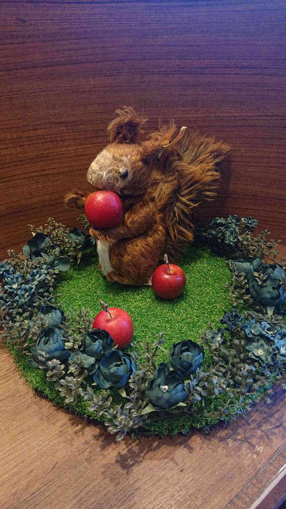 シュタイフ社のカタログで🐿️が気に入って博多駅のデパートで見つけるも売約済み🏷️
