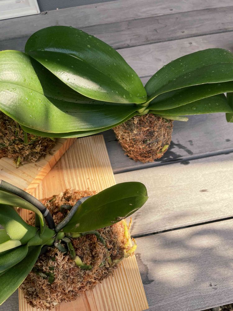 いただきものの胡蝶蘭、友達に配りやすいように苔玉にしました。我が家用には板付けしてみたけど……