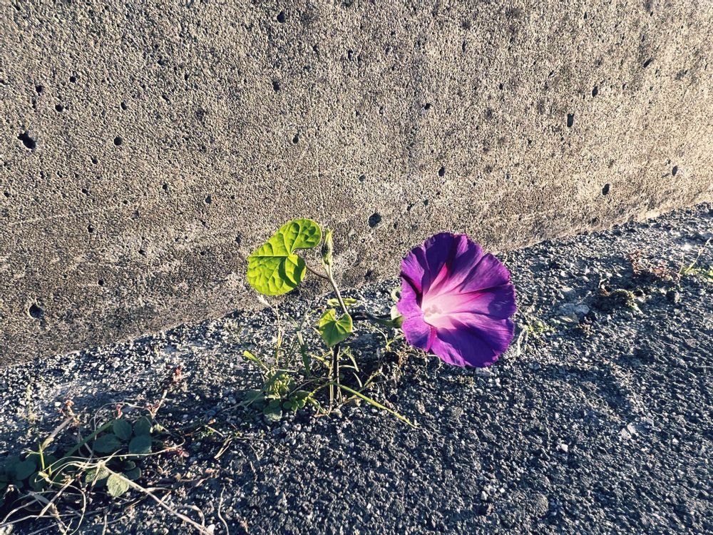 お散歩中に見つけた小さな小さな朝顔。かわいくて思わず📷✨