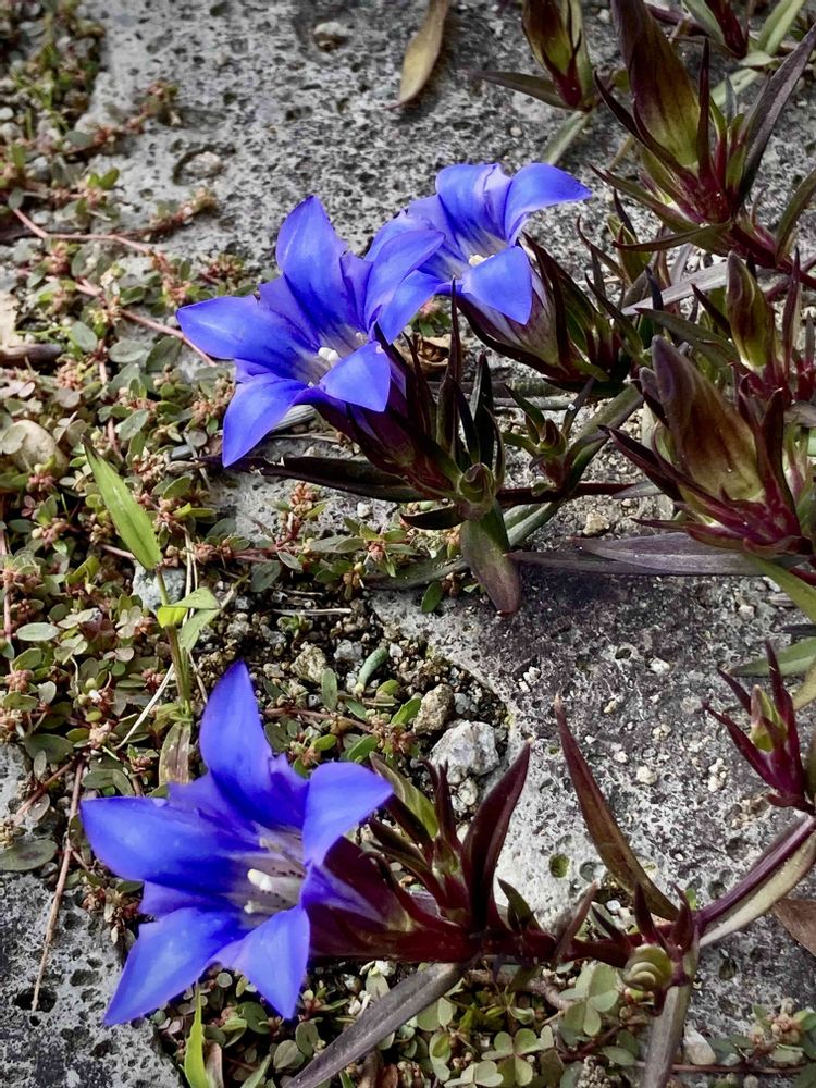 秋の野山に凛として咲くリンドウ、時には足元に這うように咲いている…🌸