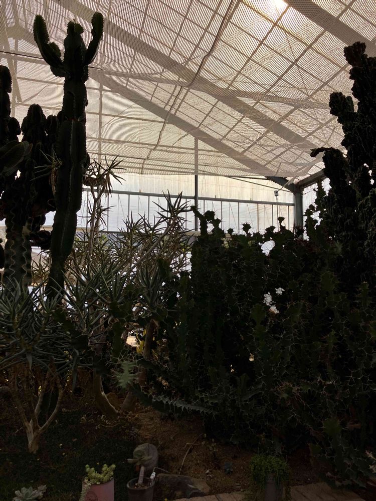 ハナキリンの小径を通ってもうすぐ咲きそうなリュウゼツラン、サボテンが2メートルくらいでこのジャングル感