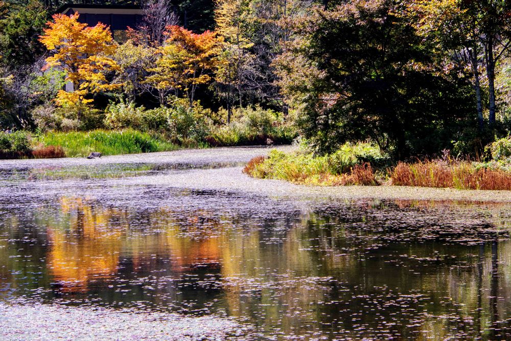 お出かけ先,軽井沢レイクガーデン,水面の紅葉の投稿画像
