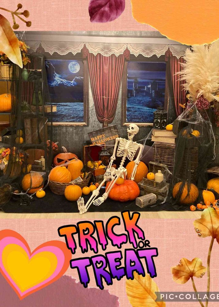 ウェルカムフラワー素敵〜✧︎ ハロウィンのディスプレイもめっちゃいい雰囲気ですね〜骸骨さんアゴ外れそう(*´艸`*)ウシシ