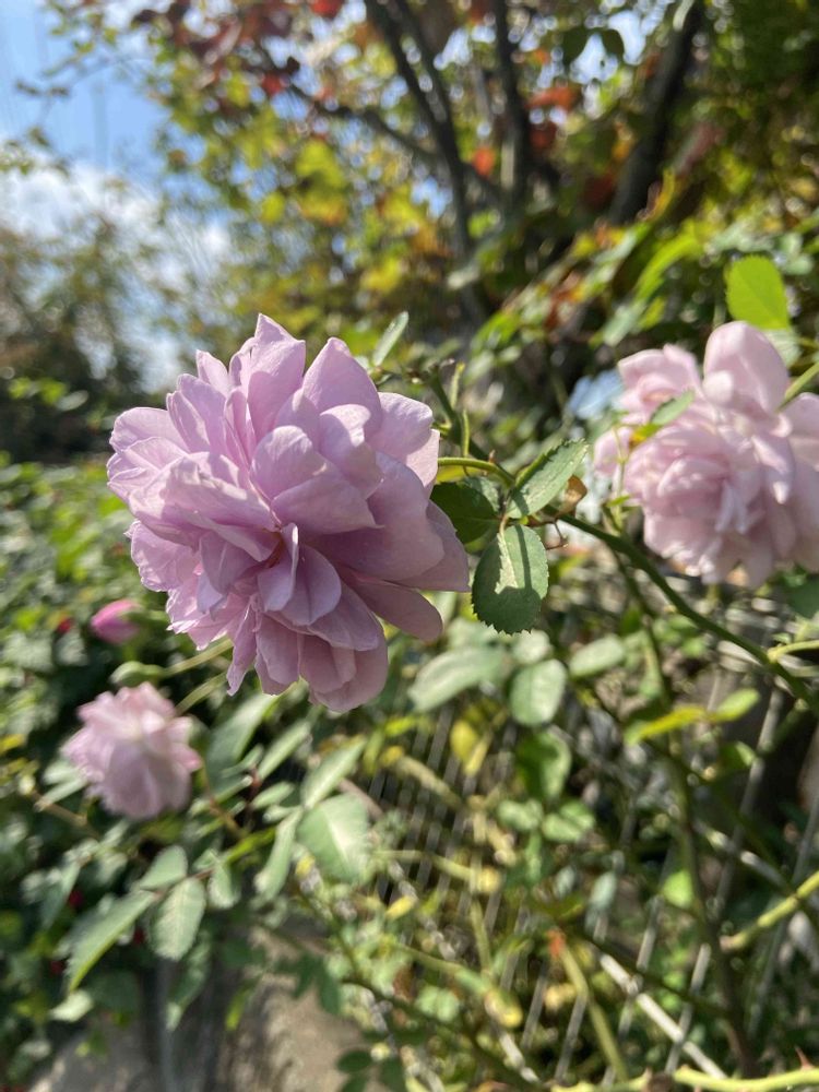 ☀️今日の庭から不作の秋薔薇を集めてフロート🌹消毒もしなきゃだけど★黒星まみれのレイニーさんも頑張ってる💕庭は秋モードです❣️