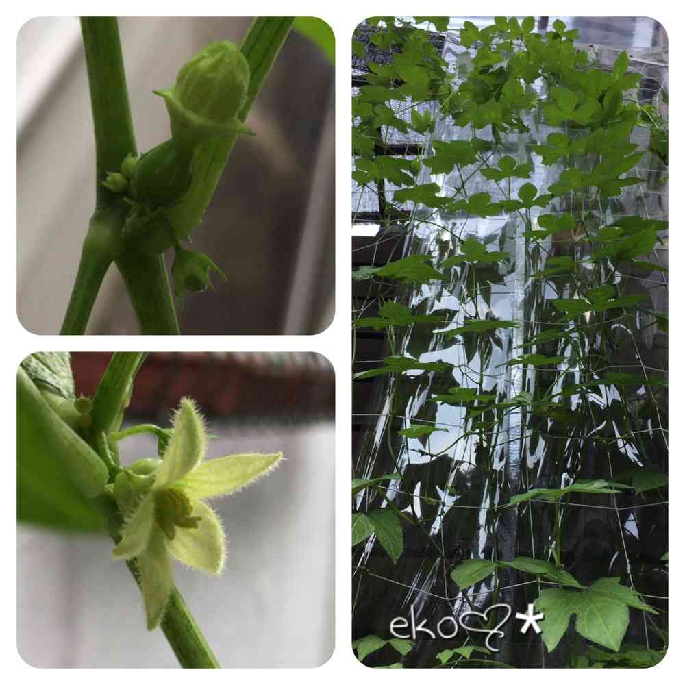 左上、雌花かな〜実の👶赤ちゃんができてる(*´˘`*)♡