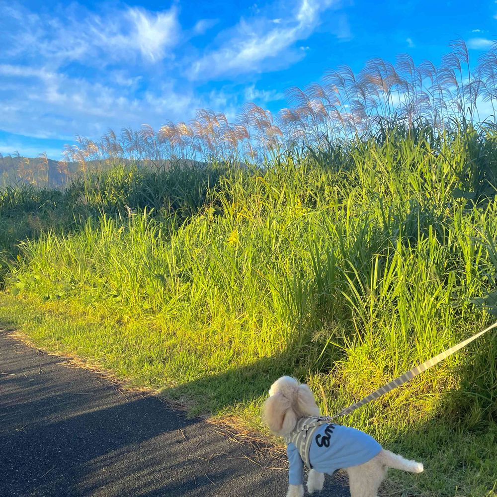 夏場は地獄の様な逃げ場のない炎天下コースで、🐾を火傷しない様もっぱら夜散歩でした。短い秋を満喫してます♪♪
