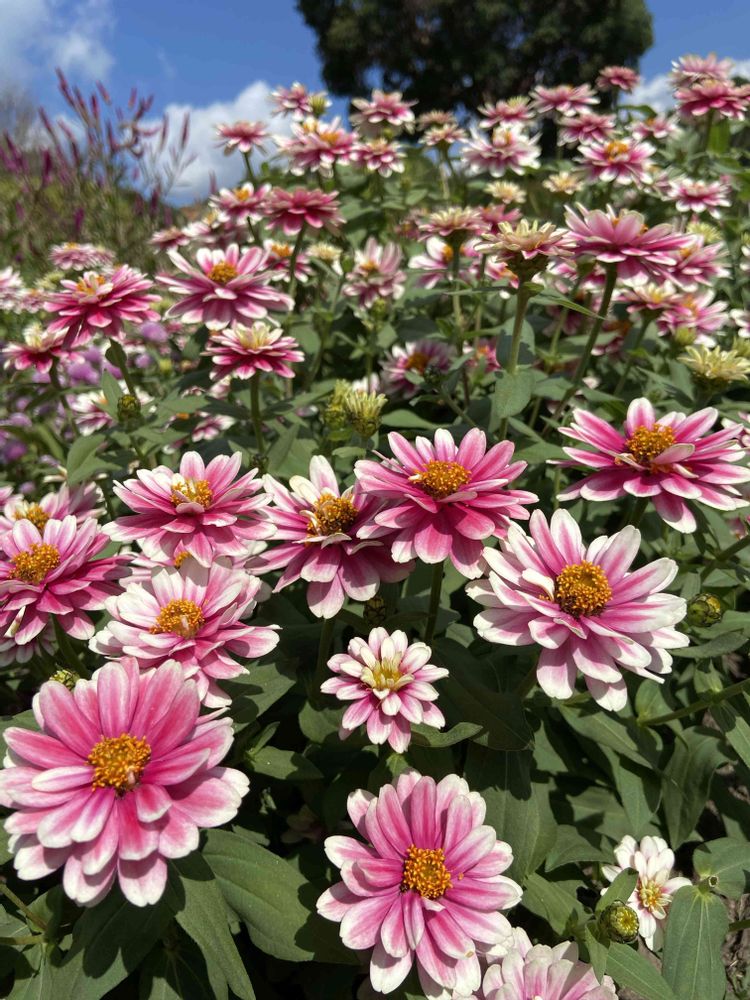 バイカラーのジニアさんもいい感じ〜🎶(ʘᴗʘ✿)🌿💐