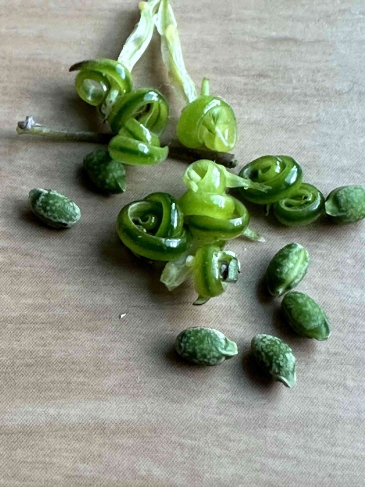 実に触ると弾けて種🫘が飛び散ります。✋に包みこみ弾いた種🫘を採取して撮影しましたのでご覧下さい。