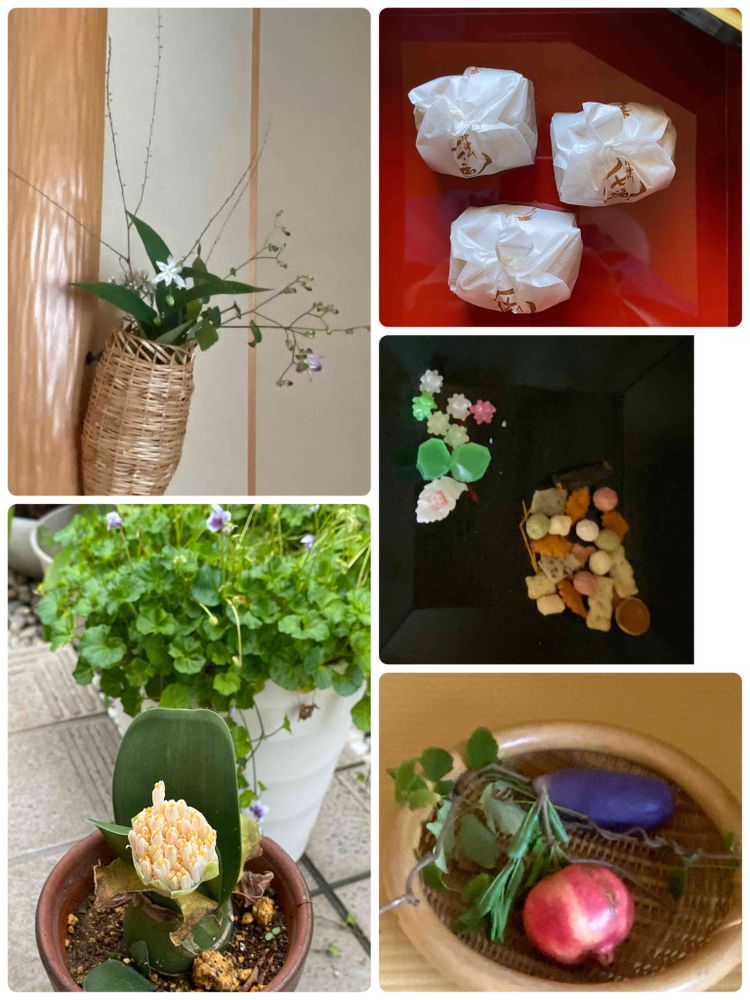 お菓子は中津川七福の栗きんとん 京都末富のマスカットの(箱捨てて名前?残りも2個だけ💦)吹寄せ