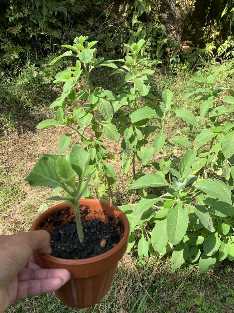 地植えしてある沖縄のハーブ🌿マンジェリコンを挿し木にします😀挿し木苗じゃないと室内での冬越しができないからね😅