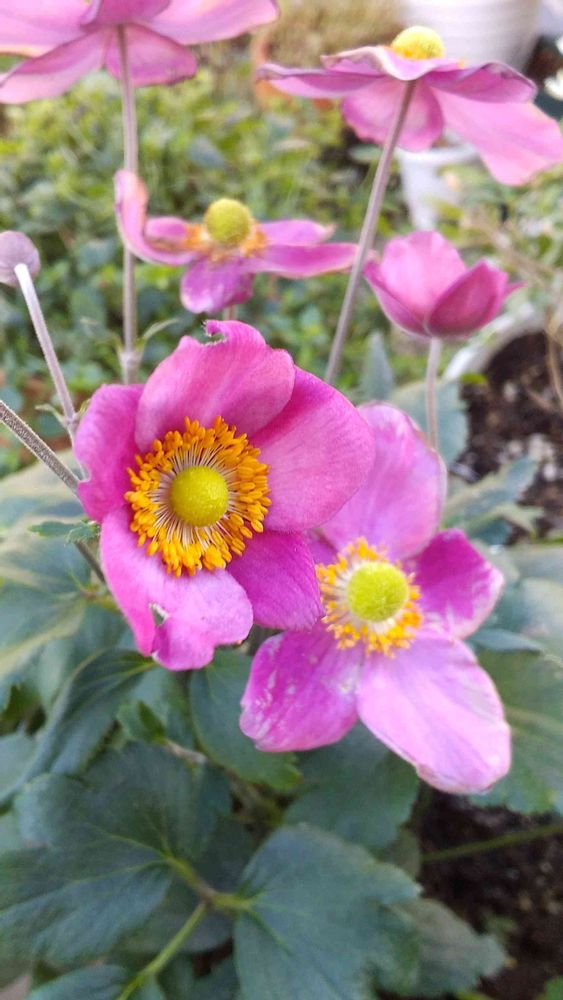 ピンクの秋明菊さん、先月お迎えしました💓 ローズとタグに書いていたのですが、こんなにかわいい色合いとは思ってませんでした😆