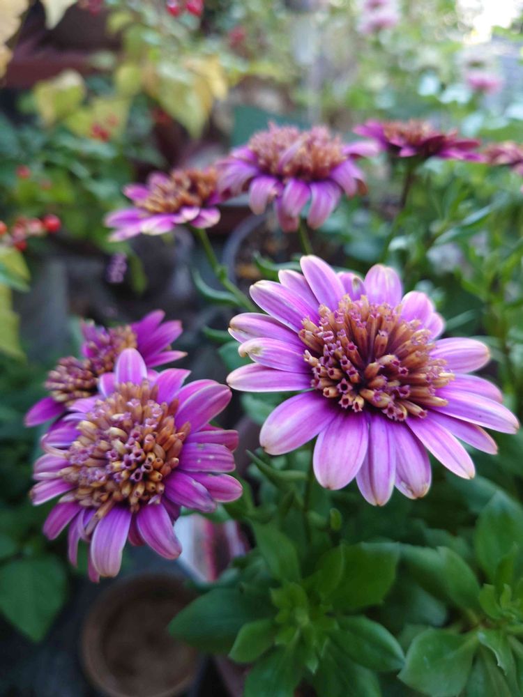 先週仲間入りしたオステオスペルマムが暖かい日差しの下で たくさん咲いてくれました☺️