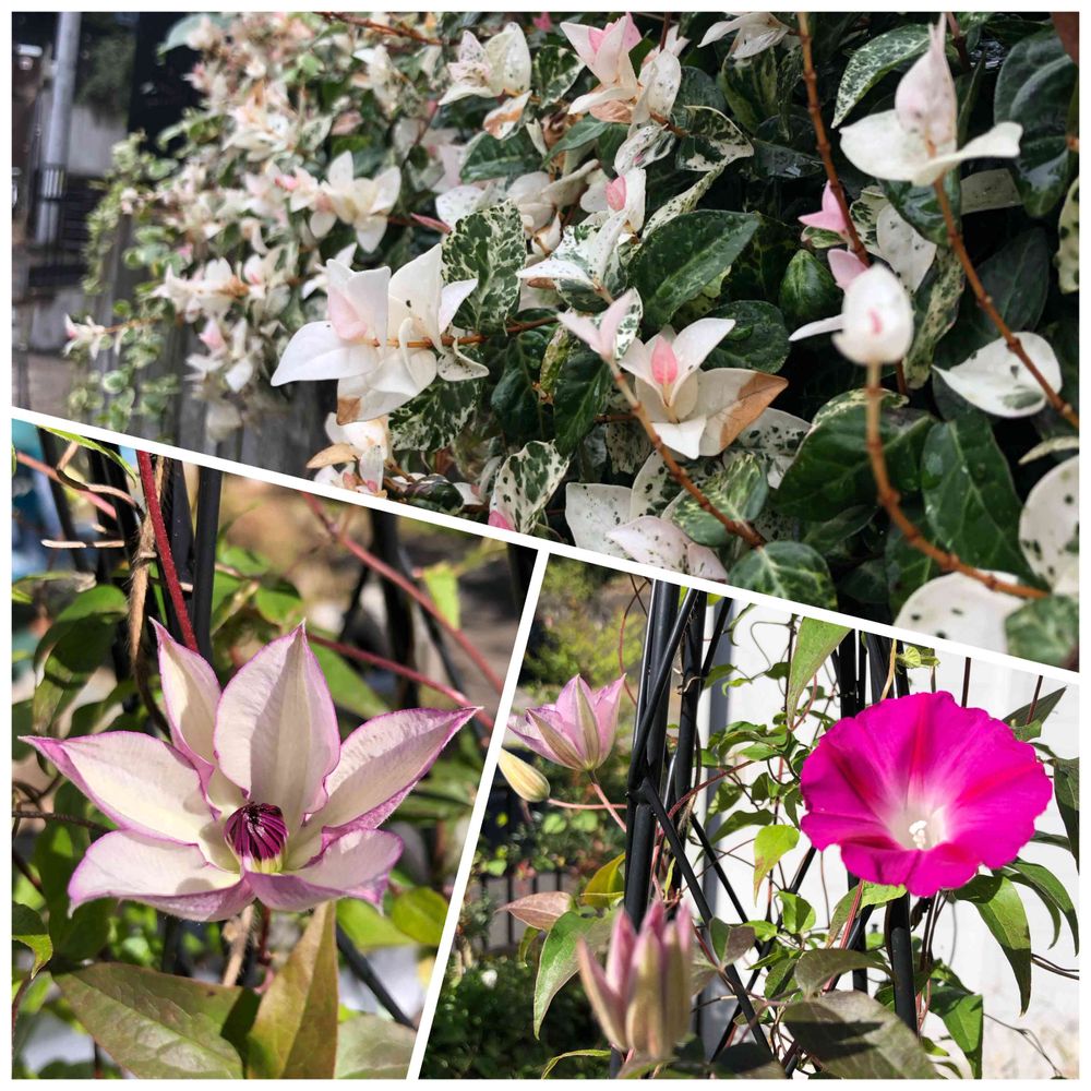 庭にまだ朝顔とクレマチス がちらほらと咲いてます♪
