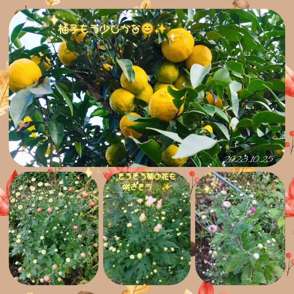 柚子はまだ陰にあるのは青い…もうすぐかな。