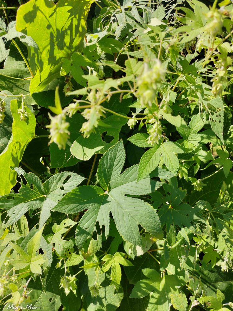 カナムグラの実がなっていました。花は花粉症の原因になるようですね🤧