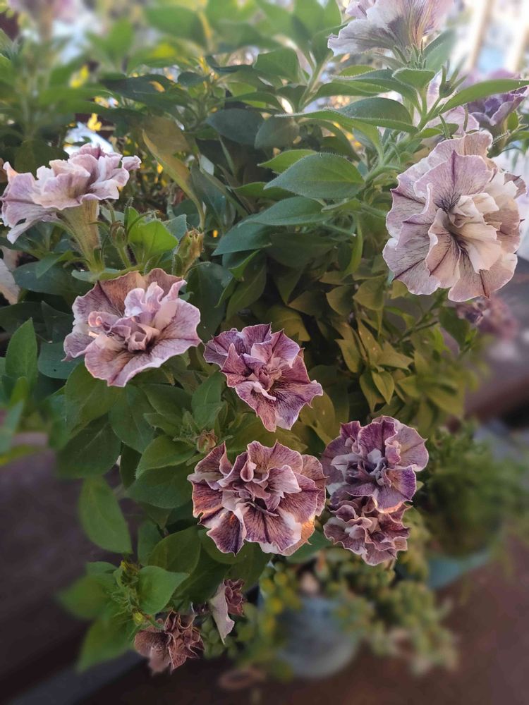 ペチュニアジュリエットモダンホワイト。秋っぽい色で咲いてます。夏より元気。