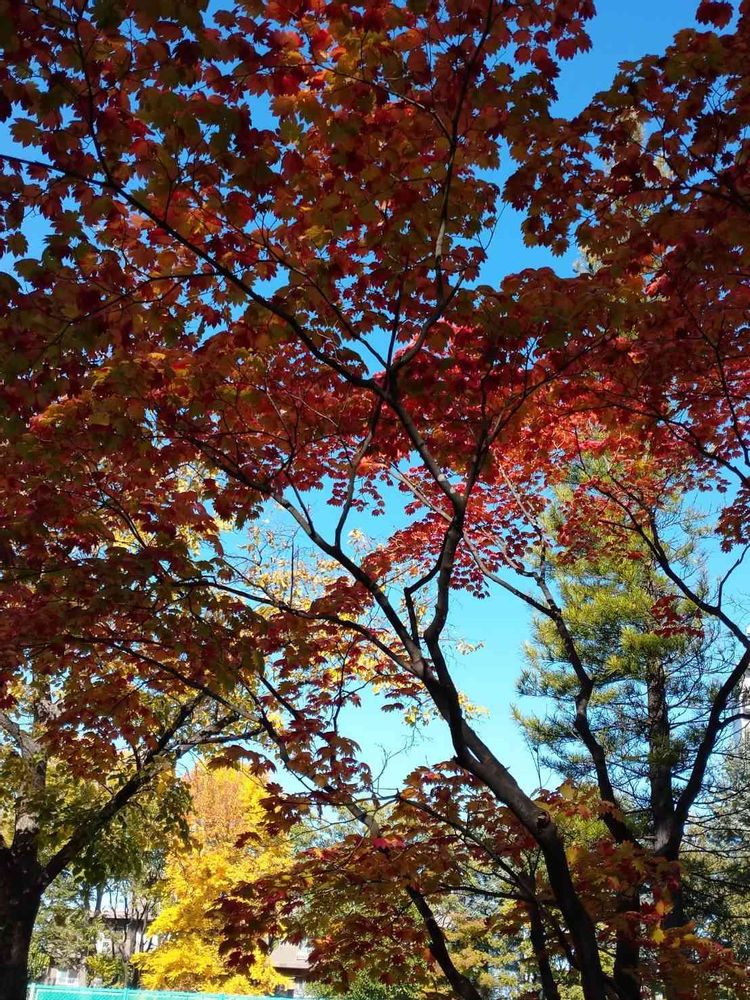 こんばんは〜青空に紅葉がとても綺麗〜💕