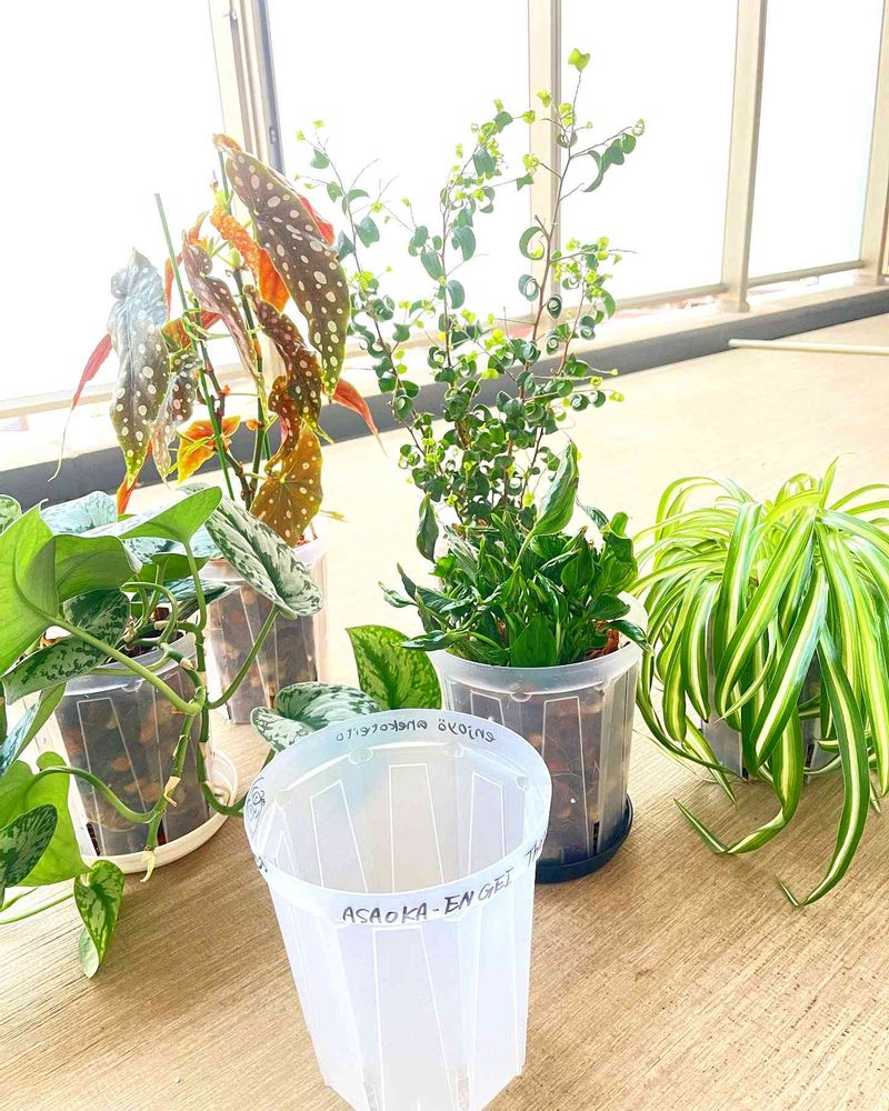 浅岡園芸さんの透明スリット鉢「ネガミエル」に植え替え。ねこチップ使い果たしてしまった