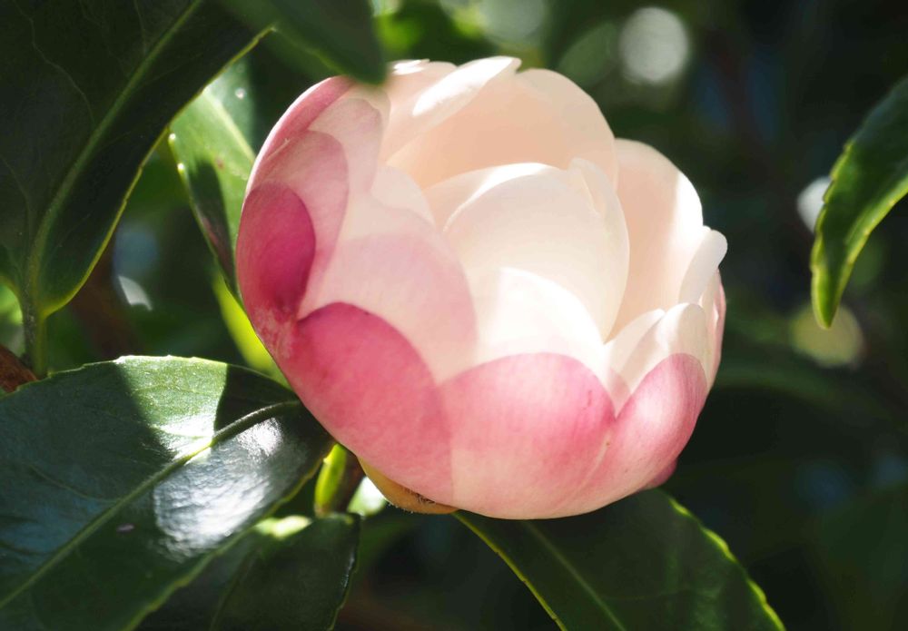 もう美しく開いて来た山茶花さん 光を浴びて嬉しそう!