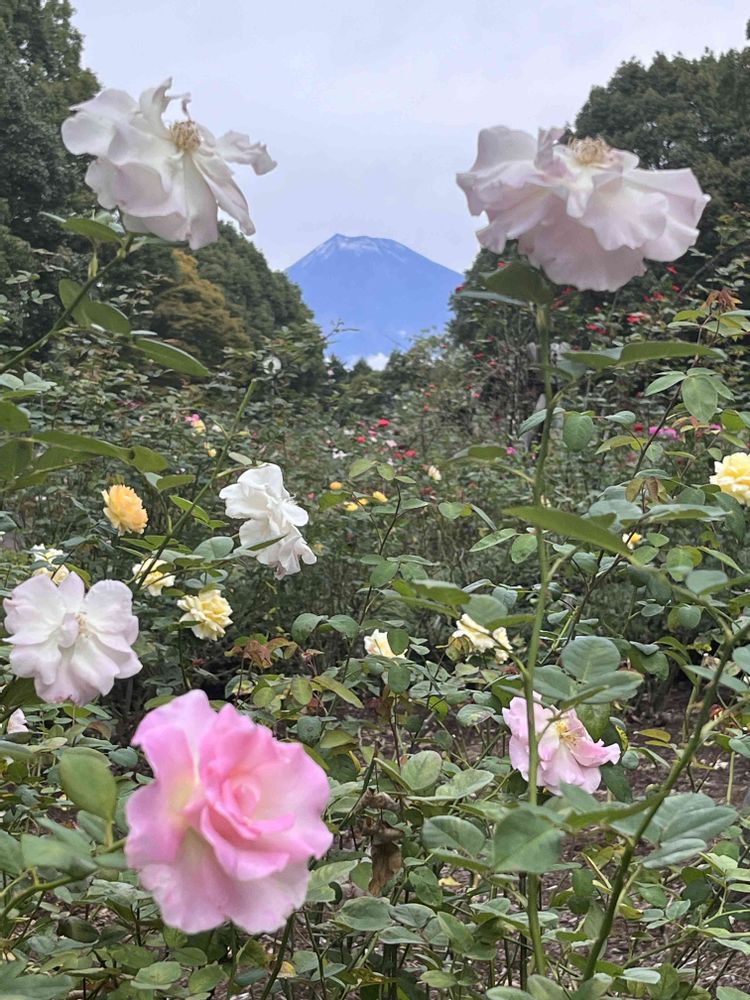 バラから覗かせた富士山が控えめながら素晴らしいです。富士山はどんな状態も美しい😍