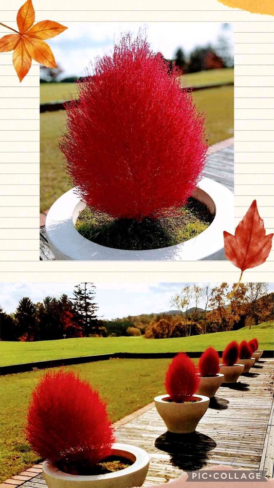秋晴れでゴルフ場にコキアが植えられているのは珍しいんですがあんまり可愛いので📸しました🎵