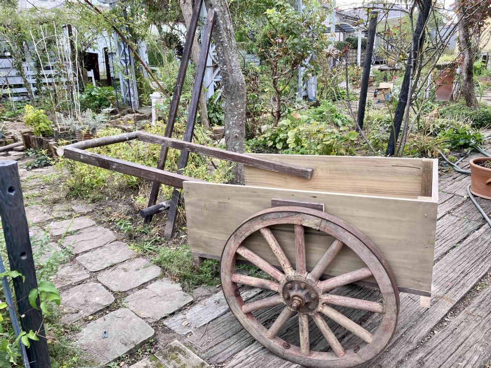 オープンガーデン仲間の友人が、古道具屋さんで車輪を買って、ご近所さんに作って貰ったそうです‼️欲しい⁉️でも置き場所を空けるために古い一輪車を捨てようかな‼️って言ってるから、じゃあ私が拾うって言って来ました‼️出来れば早く捨ててくれないかしら笑笑