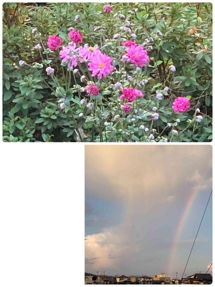 ⬇️:シュウメイギクの後方にダブルレインボー🌈🌈