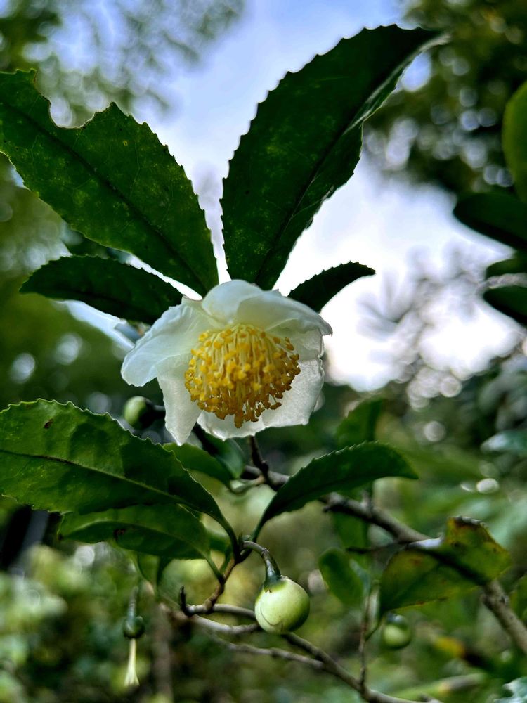 小さな実もついてて、お茶のカワイイ白い花が咲いてる♡