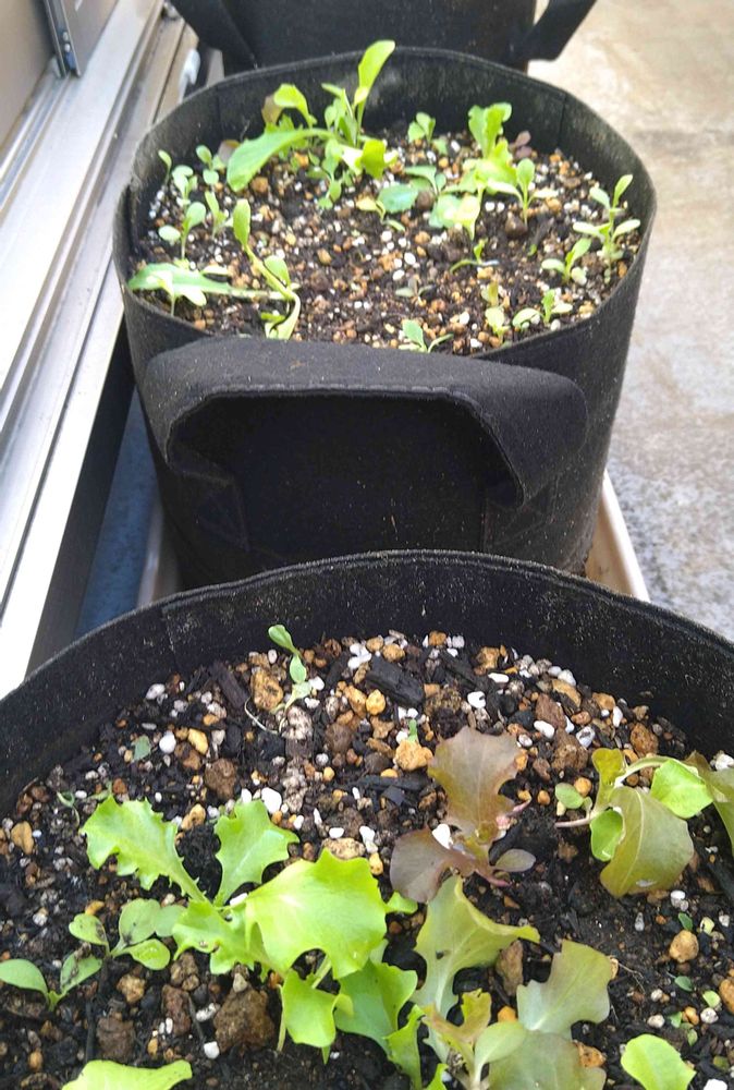 ベランダのミックスレタスは明るい日陰の方が柔らかくて美味しそう🌱