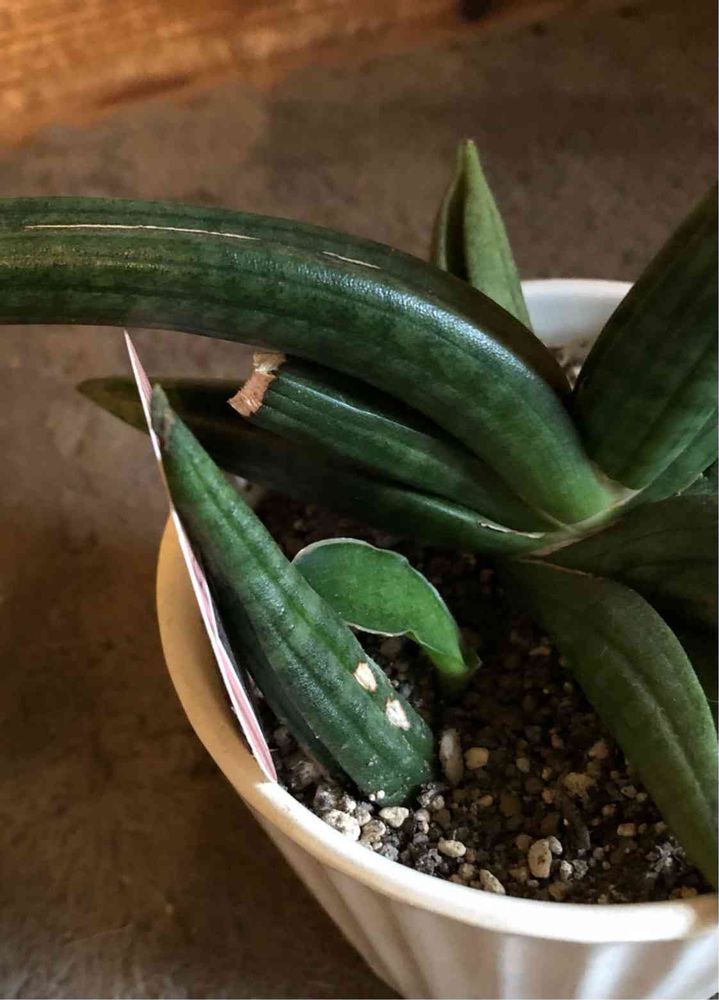 去年の冬にさくら🐕ちゃんに齧られたサンセベリアのパテンスさん